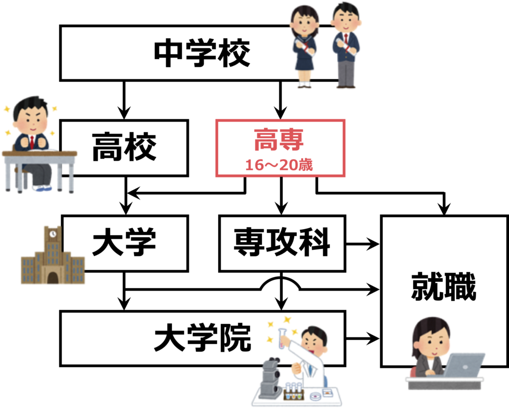 高専は学校の1つです。大学と同じ高等教育機関に分類されます。